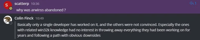 Hi all, sorry for the outdated question but, what happend with the Arwinss ReactOS project?