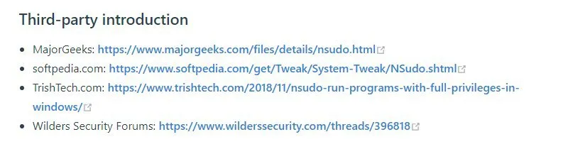 I know the document of NSudo is not friendly for the normal users. (The only one developer, myself, put lots of effort on the source code.)