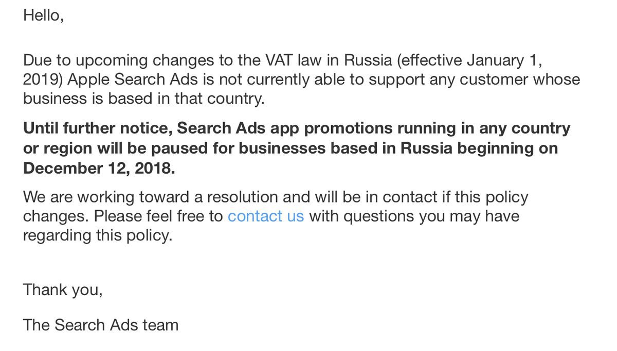 Apple заблокировала сервис Search Ads для российских разработчиков, позволявший продвигать своё приложение в App Store. Всё из-за изменений в «налоге на Google».
