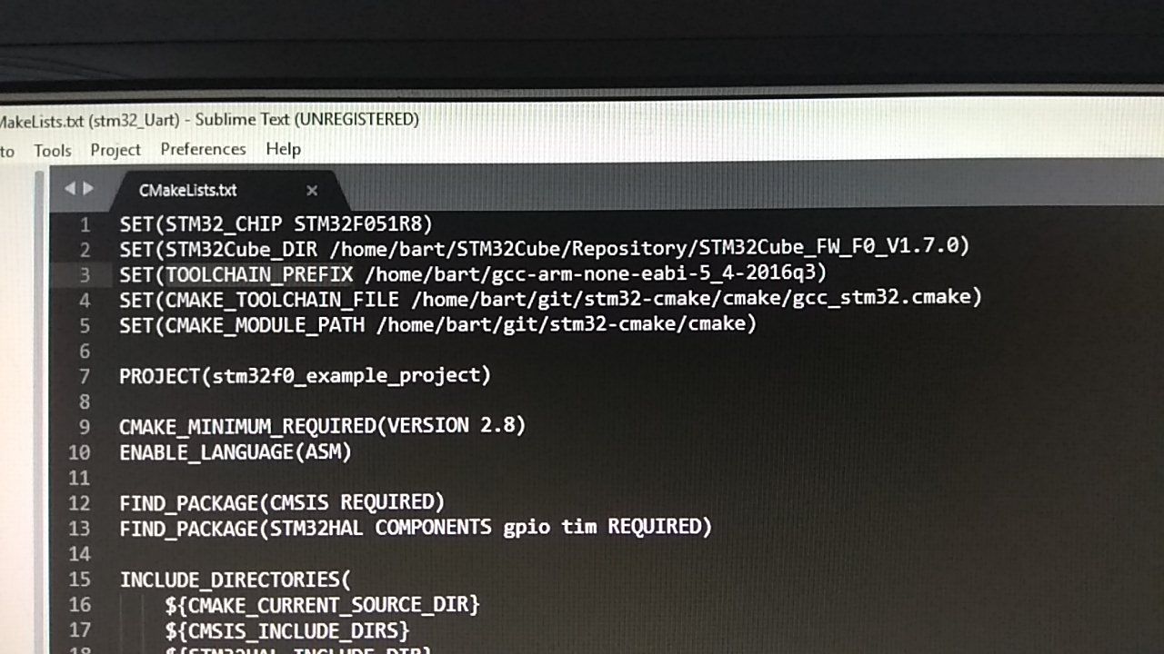 Кучу примеров нашел под линукс+qt+cubemx. Переделываю под винду, а cmake ругается