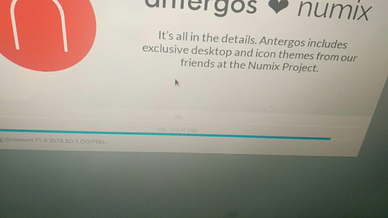 Никогда не ставьте Antergos. У неё говно какое-то вместо репозиториев. При установке качает пакеты со скоростью меньше 200Кб/с.
