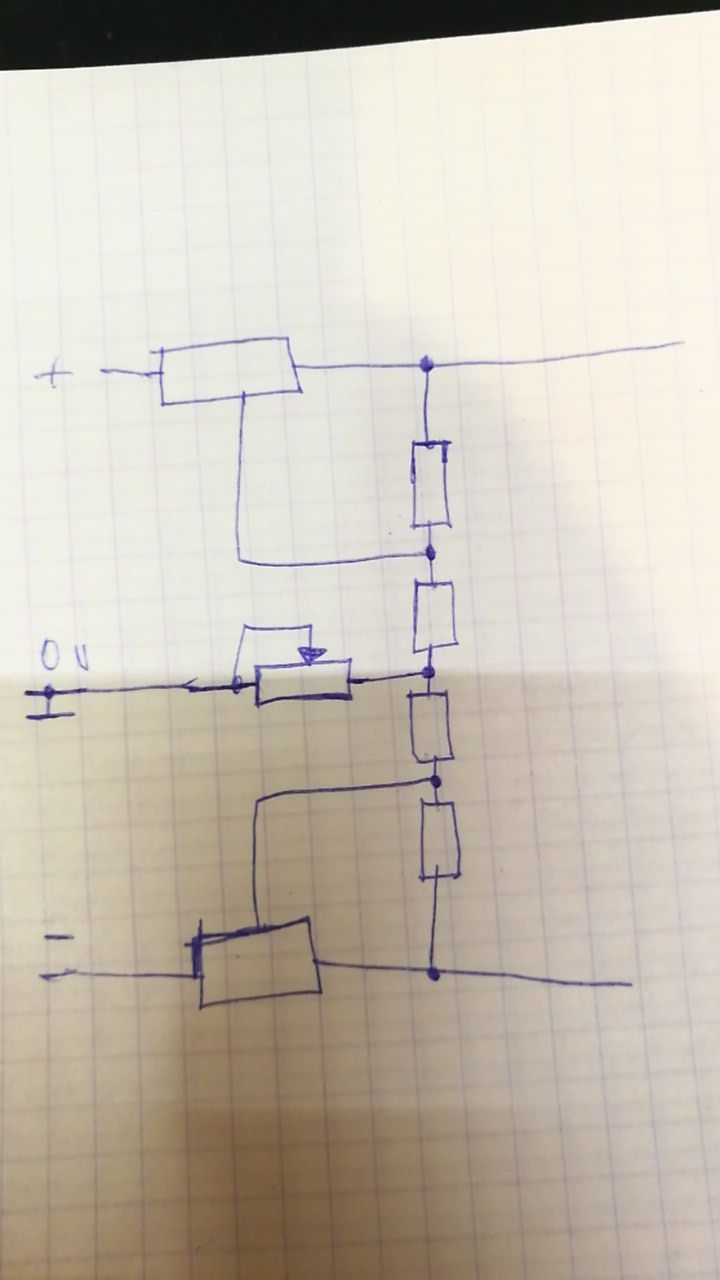 Есть две линии допустим +20 -20. Как регулировать их две сразу линейниками чтоб менять напряжение на двух сразу одним подстроечным резистором? Чтоб не выставлять сначала на одной, потом на другой ручками.