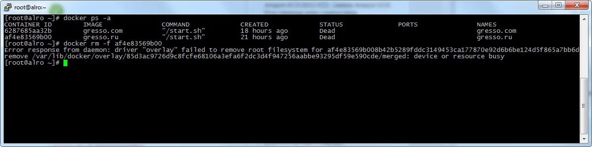 Ребят всем доброго дня, может кто сталкивалася с такой проблемой. Остановил контейнеры у них появился статус DEAD и удалить не могу вот скрин