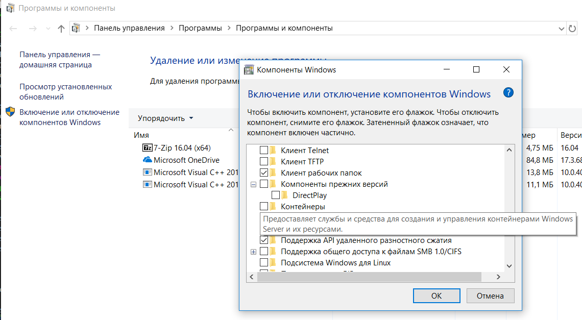 Контейнеры - Windows 10 features