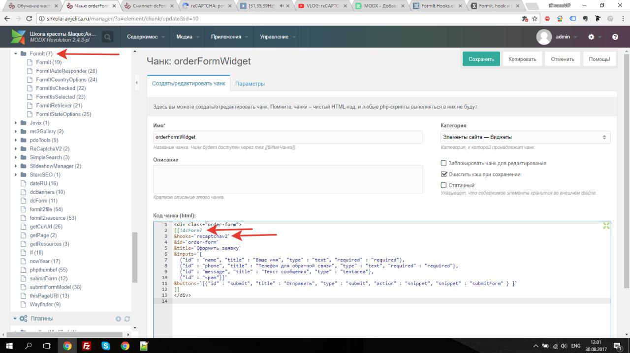 Добрый день, подскажите пожалуйста. Установил плагин для recapthaV2 хочу в форму добавить, добавить в html получилось, но форма не обращает внимание прошла капча или нет. Плагин для FormIt как я поним