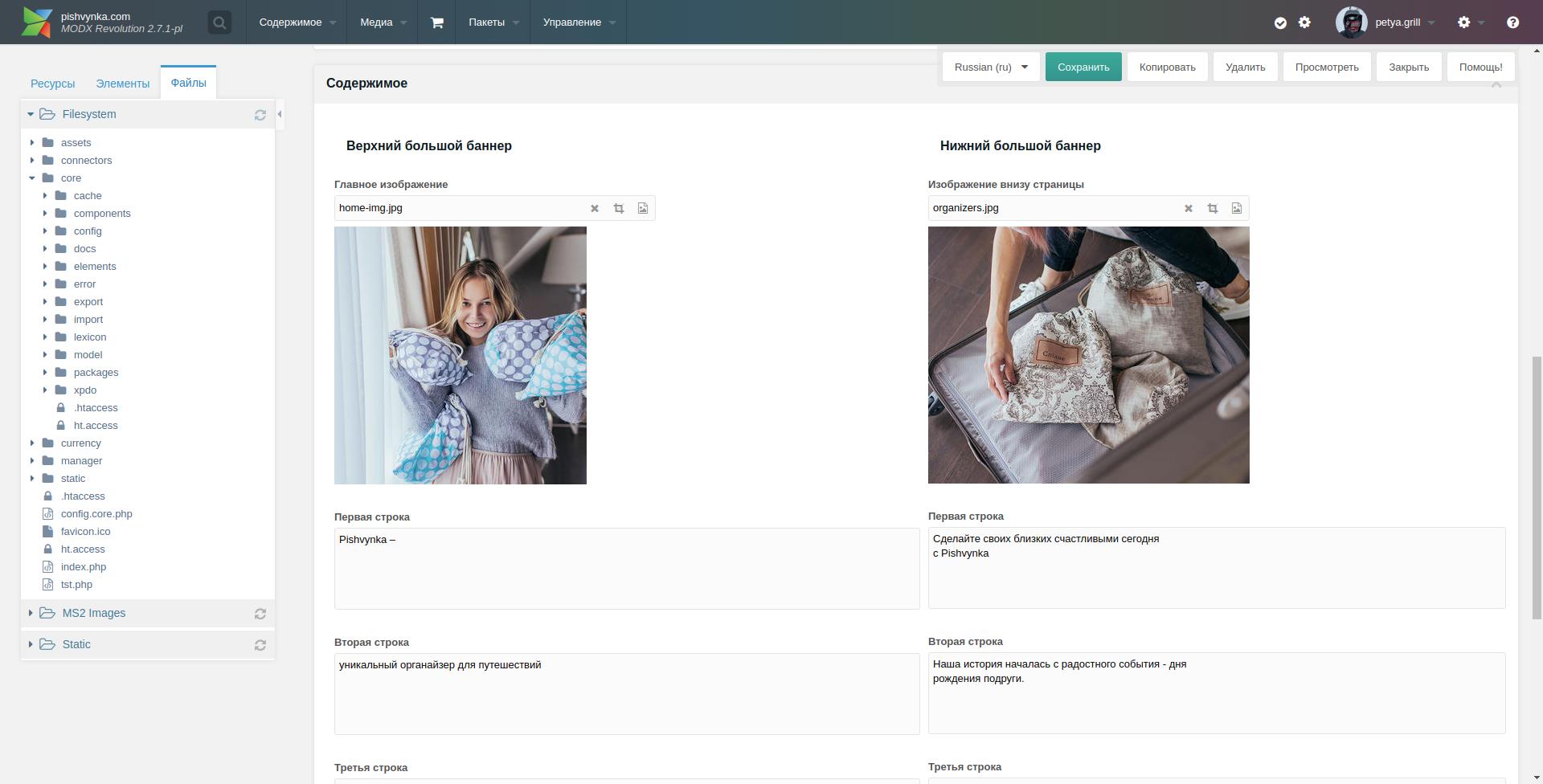 это к примеру редактирование главной страницы