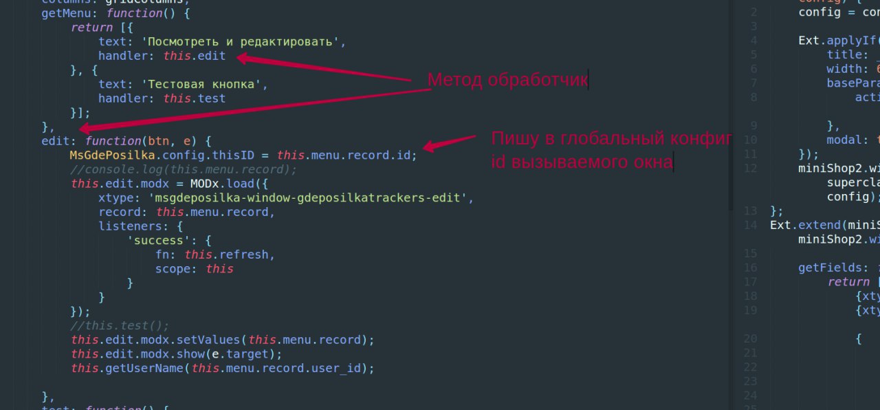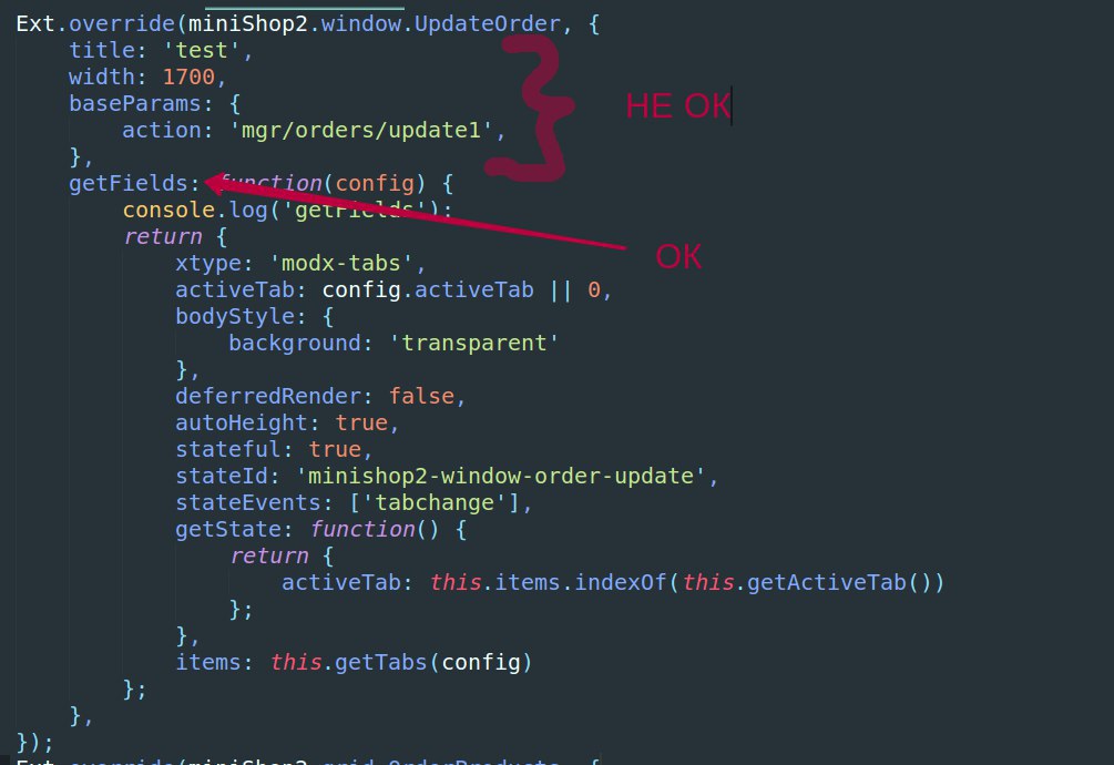 То есть, мы объявили новый xtype и вызвали его во второй вкладке окна редактирования. При вызове указали параметр record, куда передали массив со свойствами подписки.