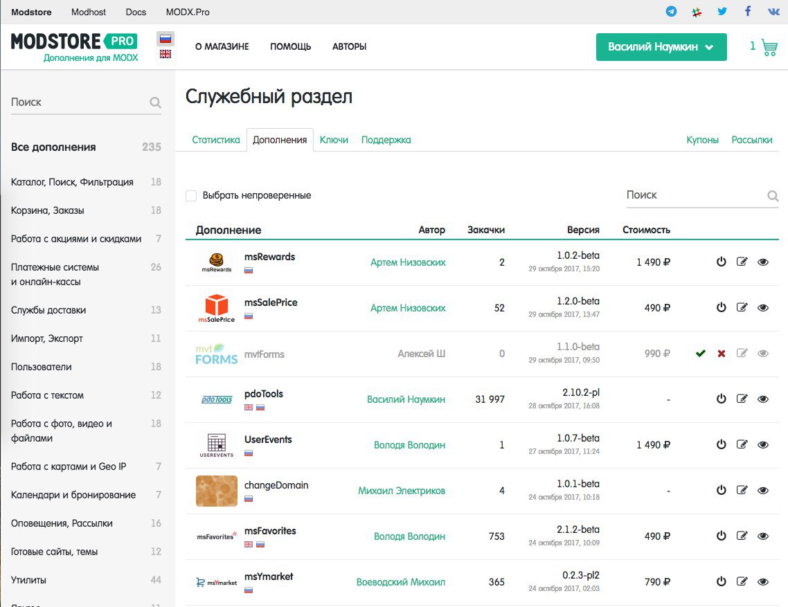 Я уже неоднократно показывал, что на modstore вся админка - снаружи сайта, а не в менеджере. И нам это очень нравится, потому что можно работать с мобильного.
