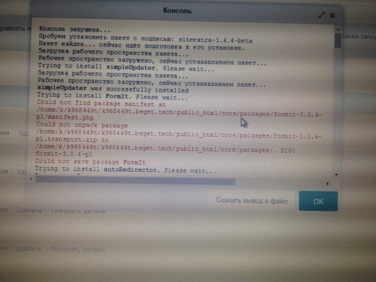 Голый modx, новый хостинг. Дополнение siteExtra. Вот что ему не хватает?