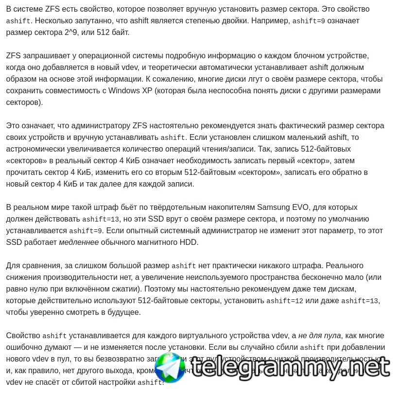 основной минус тоже верно подмечен - сейчас у vdev после создания нельзя поменять ashift