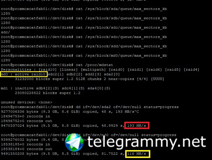 в общем я хз почему блоксайз надо указывать для дд, чтобы он с рейда начал читать быстрее