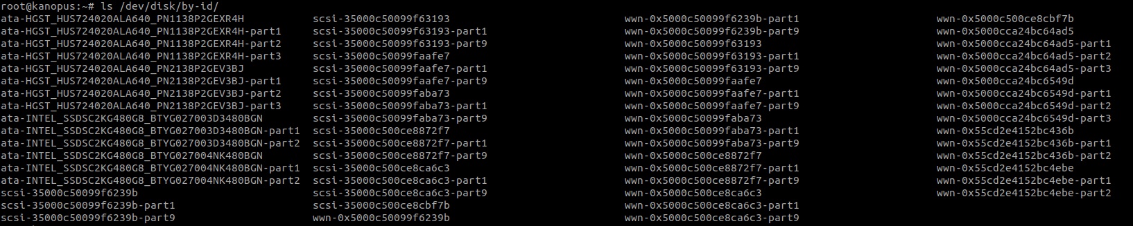 Вот тут кидали картинку. Диски подключены с префиксом wwn. Я всегда использовал ata- или scsi- при том что всегда имеется и wwn-