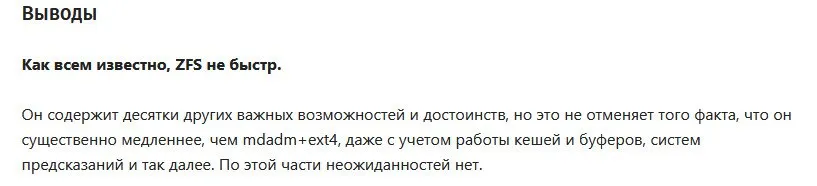 zfs крута. это комбайн. не болид. хороший, надежный, но кобайн. с отключенным синк, она довольно быстра. фишки это именно то, из-за чего стоит ее использовть. вон в виртуализации я, например, делаю снапы каждые 15 минут и храню их сутки. если хрень случается - всегда можно откатиться. синк выключен: у меня там два генератора и 8 упсов. но она медленее екст