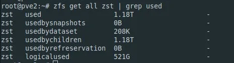 zfs get all zst | grep used