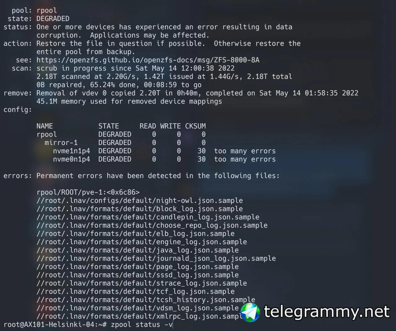 запускать scrub в третий раз я уже побаиваюсь.