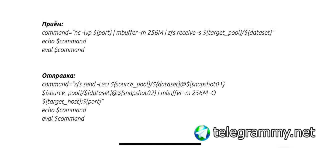 Скрипт по репликации датасета на удаленный хост. Можно в реальном времени. У самого реплицируются виртуалки https://github.com/yurykk22/zrepl