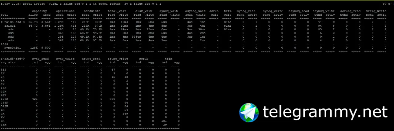 вот параметры которые я использовал для номализации работы RAIDZ1 состоящего из 4х SSD дисков Samsung EVO870