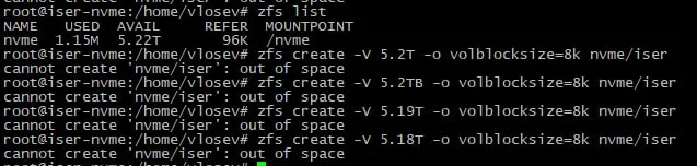 Разные единицы измерения в пределах одной команды? zfs list & zfs create?