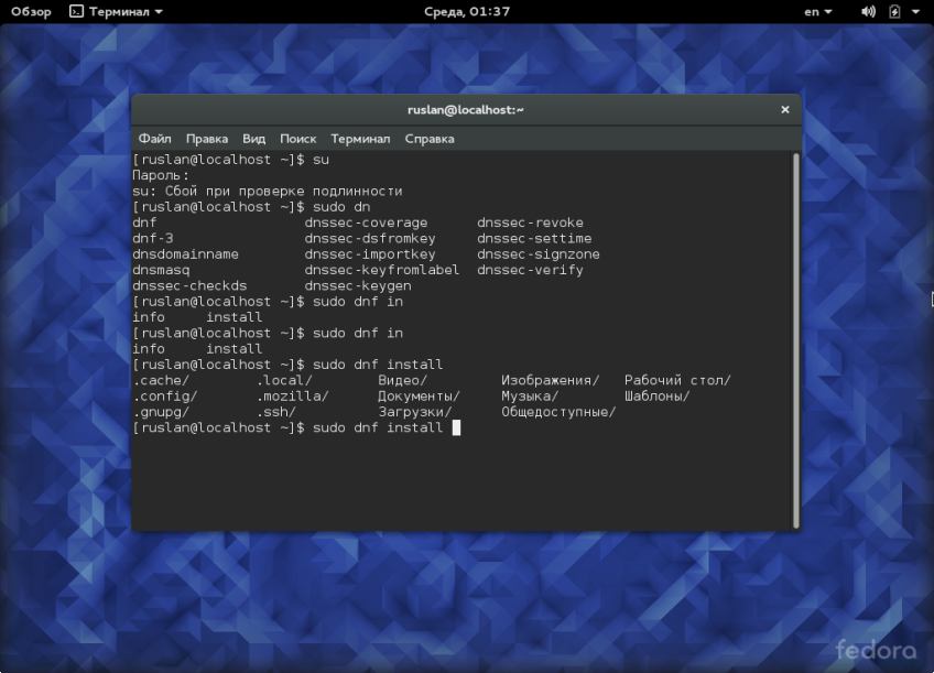 мил человек, посмотри, работает у тебя автодополнение для dnf, когда название пакета вбиваешь не полностью и два раза tab жмакаешь