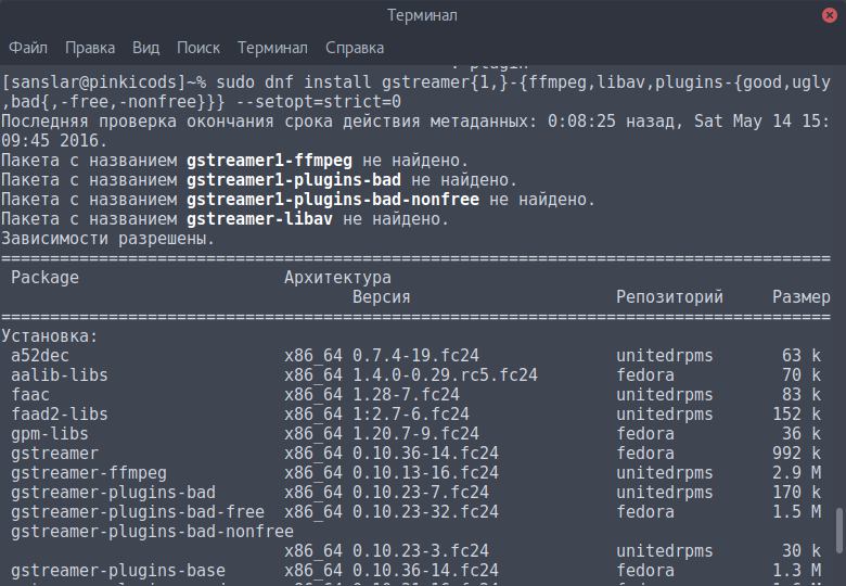 Потч без RPM Fusion твоя рашкофидора является только пуком в пустоту и ваще не работает.