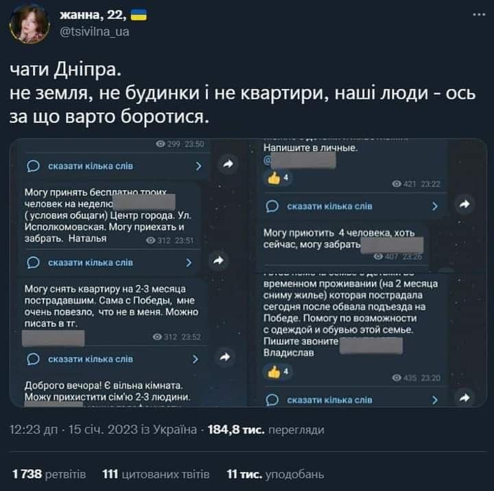 Чаты Днепра. А в росии когда теракт был на вокзале, таксисты брали в 3 раза дороже. Вот этим мы и отличаемся