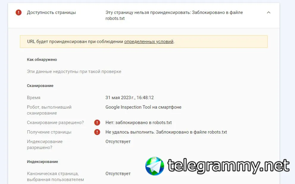 Подскажите, пожалуйста, как решать такую проблему. в урле и коде страницы noindex нет