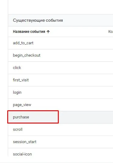 а в событиях есть purchase? он же там по умолчанию, его вроде нельзя удалить