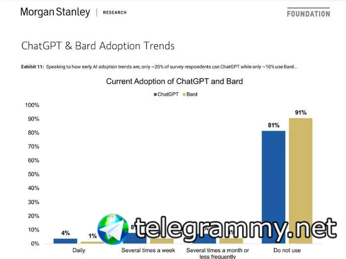 Опрос от Morgan Stanley показал, что очень мало людей на самом деле используют ChatGPT и Google Bard.