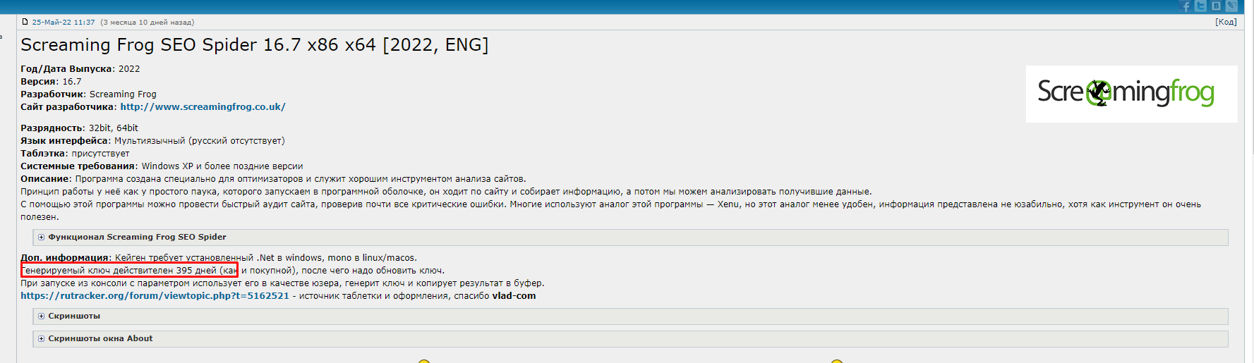 А у Screaming Frog SEO Spider лицуха на год идет или навсегда?