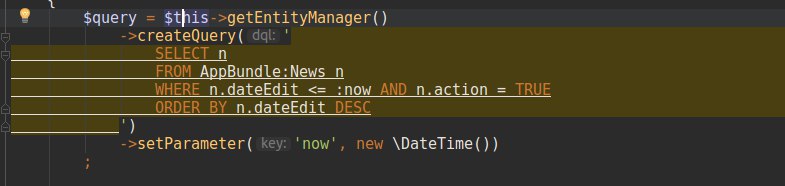 Есть такой стиль при сохранении формы: setDataCreate(new \DateTime("now")); Может в репозитории это сделано в таком же формате для единства стиля