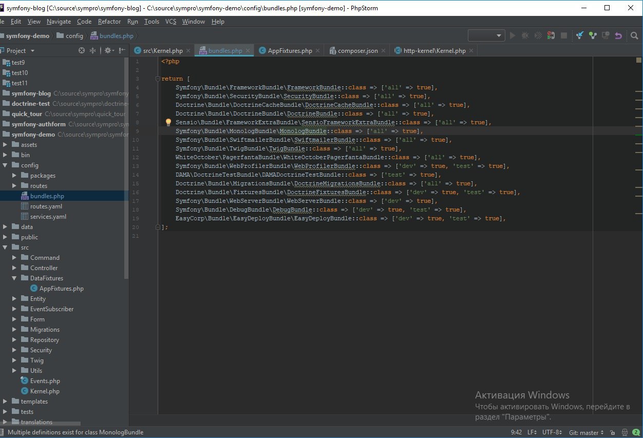 то есть так и должно быть при развертывании? куча сменяющихся класнотфоундов, которые кстати находятся в config\bundles.php. Я их вконце концов закоментил и полели уже другие ошибки.