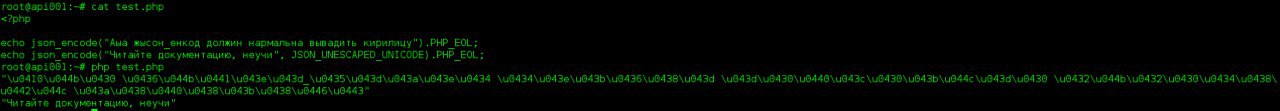 Если хочется прямо именно в JSON русские буквы, катакану и прочее, то есть флаг JSON_UNESCAPED_UNICODE