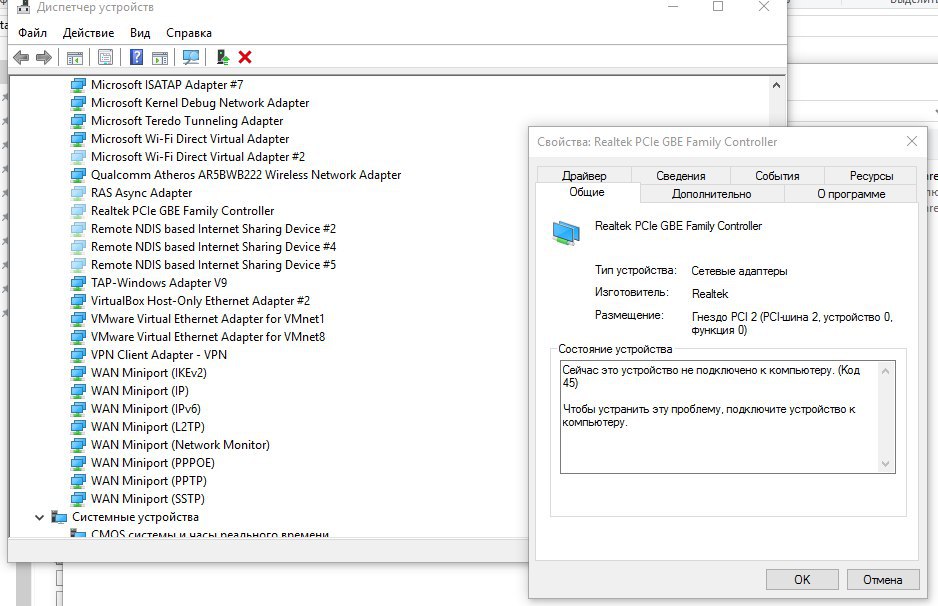Тут у меня ви фи адаптер Qualcomm и LAN адаптер Realtek