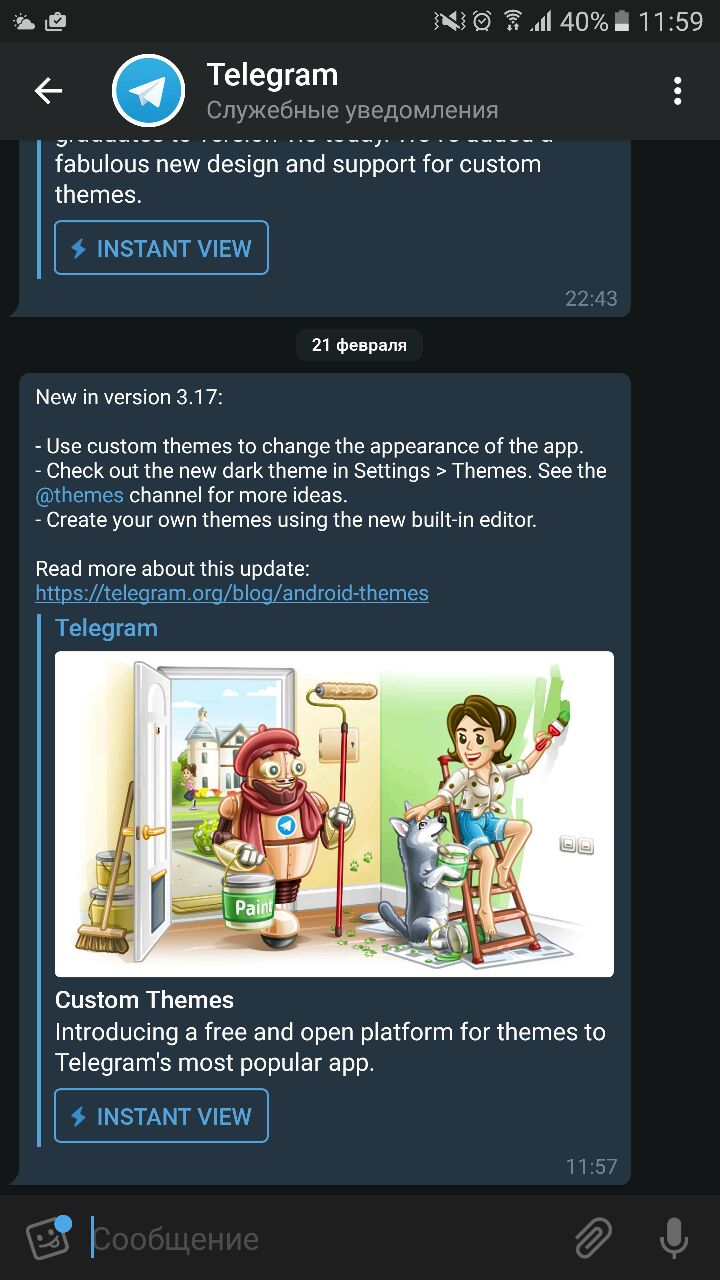 Телега обновилась. Темы добавили. Для амоледов чёрная айс