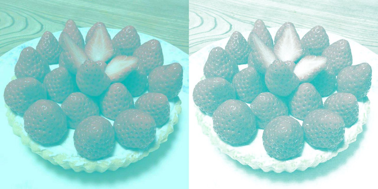 в случае с клубникой "сильно помогает" не знание, что клубника красная, а знание, что тарелка неестественно голубая. Если убрать фотошопом циан из заведомо белых участков, то мозг перестает вводить коррекцию и клубника действительно получается так себе :)