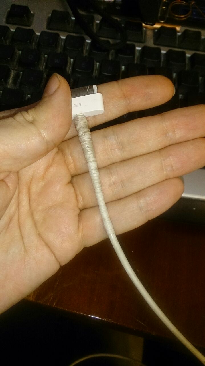 я - самсунговод-нищеброд: не вижу необходимости покупать новый кабель из-за единственной дырочки в оплетке, тем более, чтоб сам кабель внутри не пострадал.