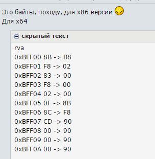 советуют поменять байты ручками