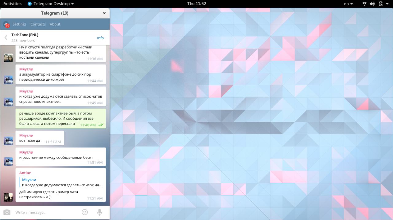 Затем поняли, что чо-та тяжко лопатить массивные базы и искать в них, в результате телега стала "сжирать" сообщения. Этот жор заметили год назад примерно уже. Кому не лень было, включая меня, засыпали сапорт вопросами "какого хуя?". Сапорт же ничего не зная, их разработчики в такие нюансы видимо не посвящали, отвечает однотипно: "странно, передали разработчикам"