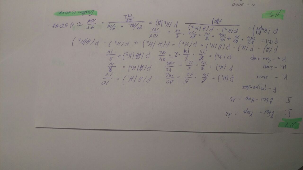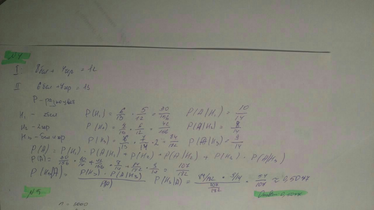 3 гипотезы по доставании шаров, считается вероятность для каждой, потом общая и от нее для нужной