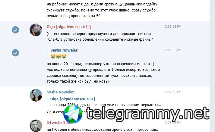 на ПК телега обновилась, добавили хрень visual improvemtns. Теперь если человек написал несколько сообщений подряд, кружок аватары виден тольно у первого сообщения. как-то непривычно :(