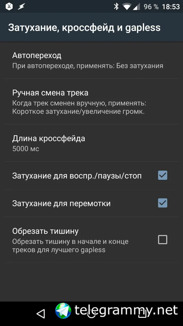 эквалайзер мне лично не нужен, настройки перехода это что?