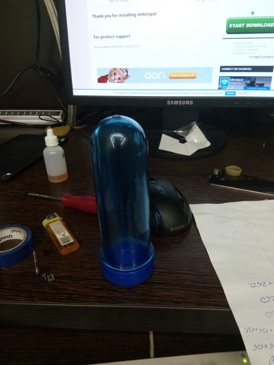 Вместо конвектора в крепление антены воткнул модем. Точнее модем в преформу, из которой бутылки 5л делают, а преформу вместо конвектора