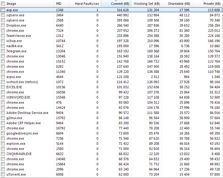 но вот у меня подозрение, может всё это складывать надо? коммит сайз, воркинг сет...