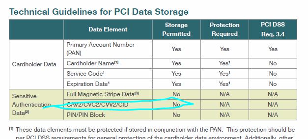 такие элементы как CVV2 (Card Verification Value 2 — код проверки подлинности карты платёжной системы Visa) и CVC2 (аналогичный код платежной системы MasterCard) относятся к критичным аутентификационным данным, а значит не подлежат хранению. Тем не менее, в пользовательской практике встречаются случаи, когда торгово-сервисное предприятие с целью упрощения жизни своим клиентам не требует повторного ввода этого кода на своем веб-ресурсе. Таким организациям приходится выбирать между сертификатом PCI DSS (и, как следствие, безопасностью своих бизнес-процессов) и излишней псевдозаботой о своих пользователях, ведь CVC2 и CVV2 являются одним из ключевых звеньев при совершении финансовых online-операций.