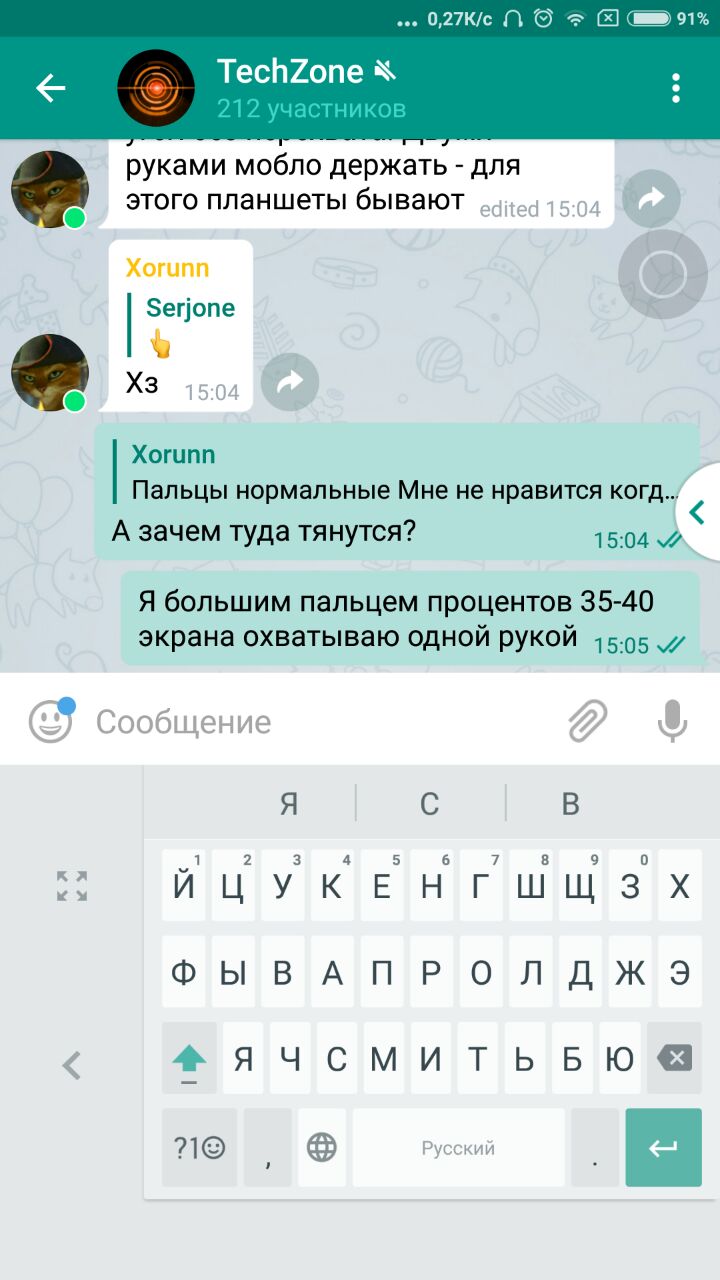 Я большим пальцем процентов 35-40 экрана охватываю одной рукой