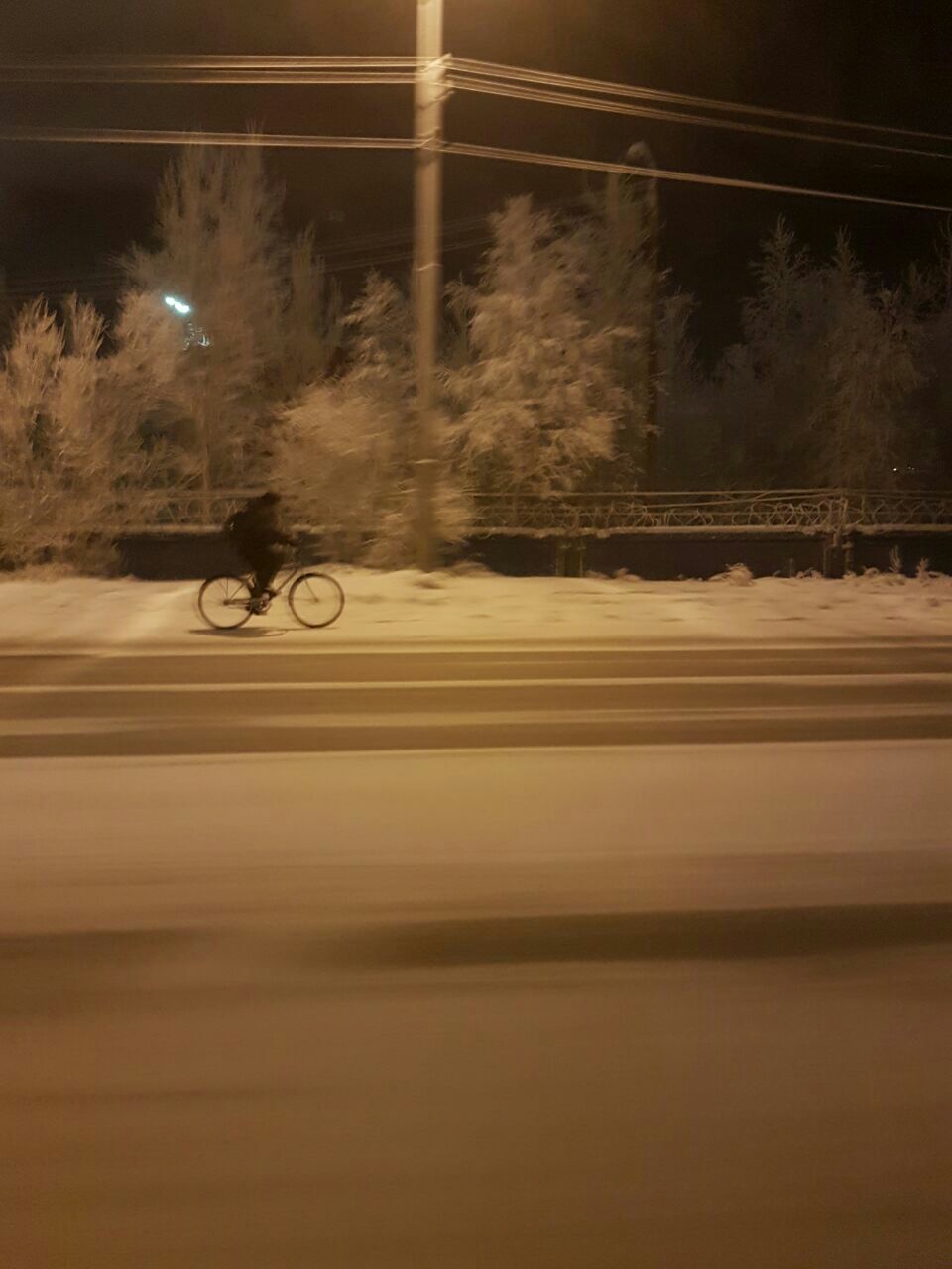 Ну. -34 таки) и тут в прикол. А на моей фотке просто чел едет на работу. На велике. В -37