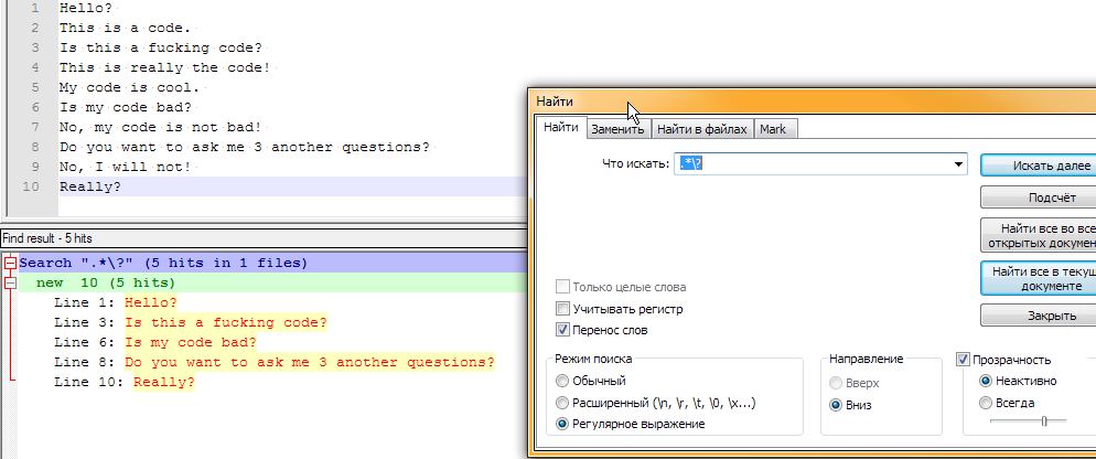 пока догадался до регэксп на поиск с ? в конце строки текста