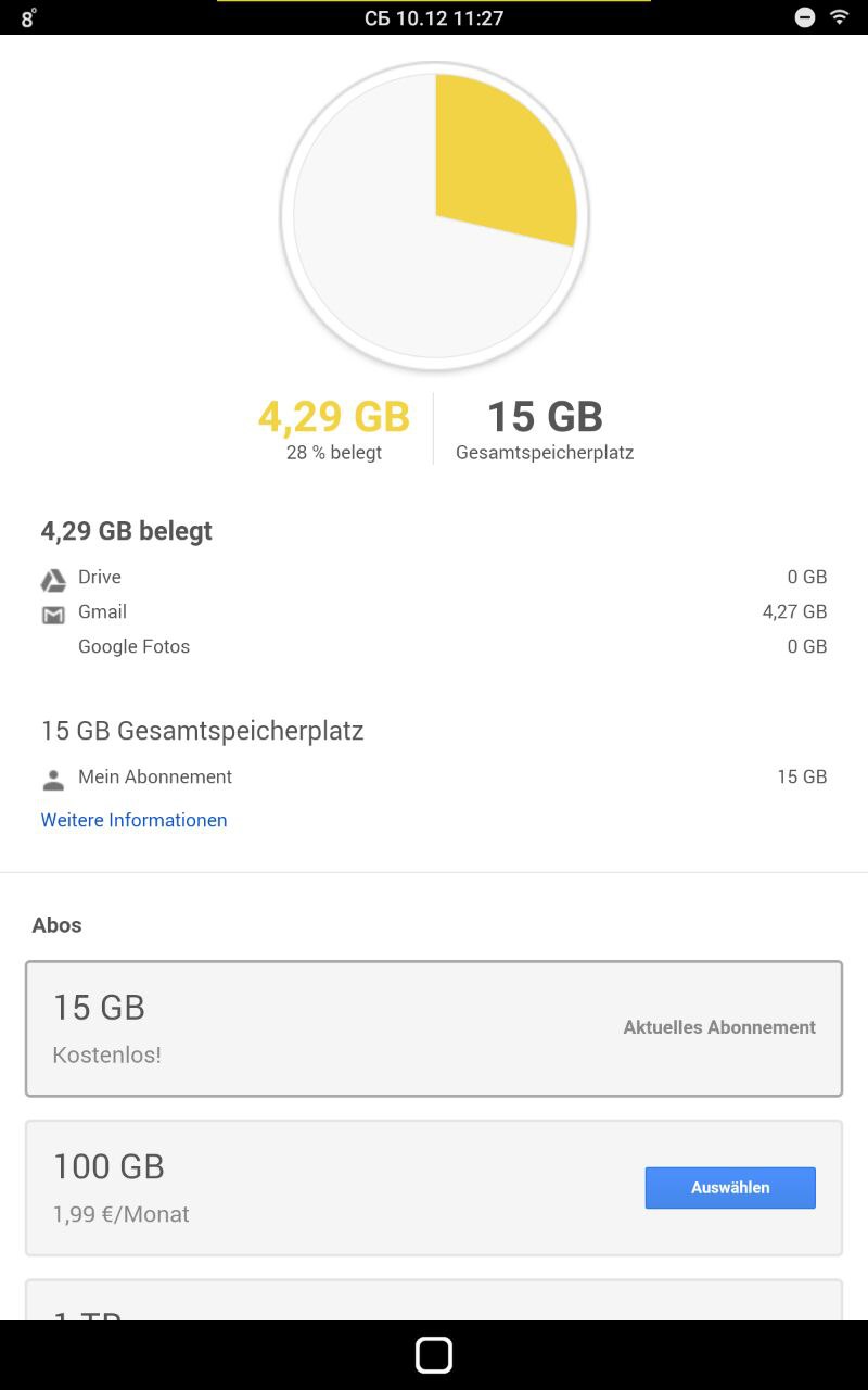 например 100гиговый тариф гуглодрайва делает из 15 гб 115гб