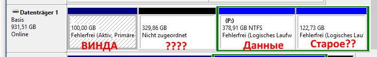 100Гб, 400Гб и еще 150Гб (какой-то древний раздел судя по списку файлов)