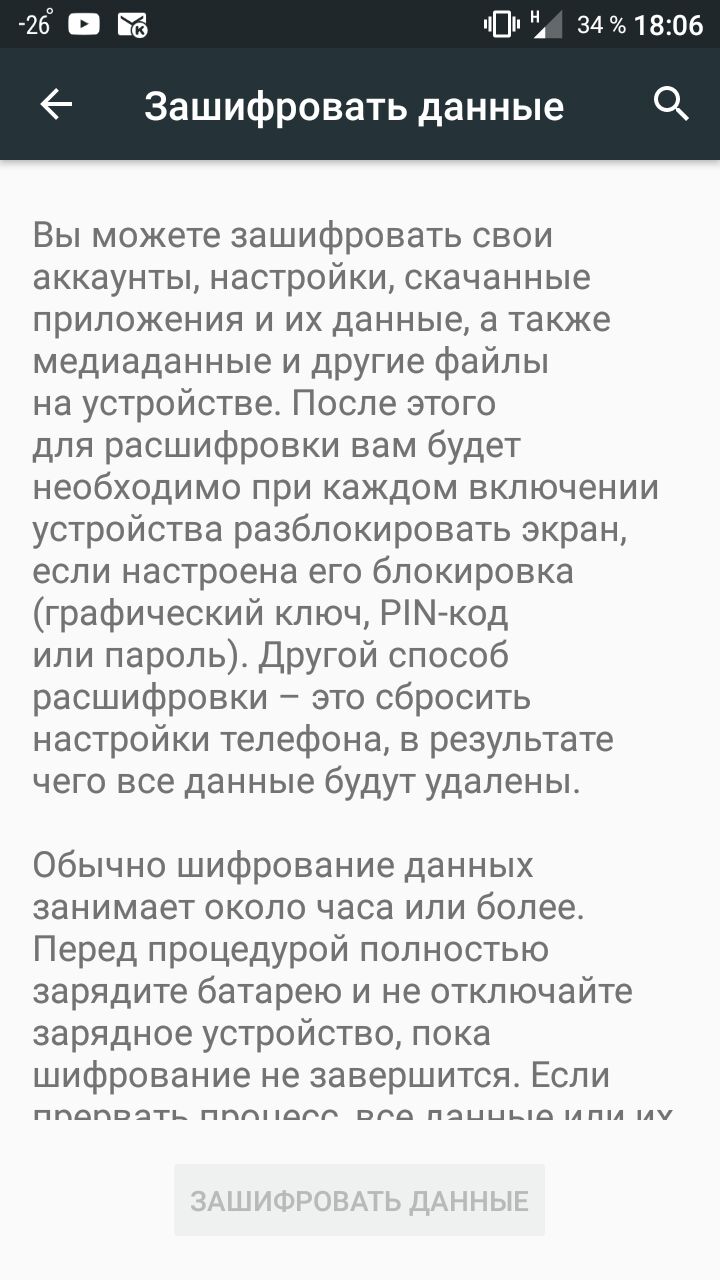 Фишка этого шифрования в том, что при выключении телефона все данные лежат зашифрованные и их можно только вайпнуть. Ну, то есть или удалить или расшифровать. Это хорошо, если телефон потерял, ты знаешь - что данные никто не прочитает